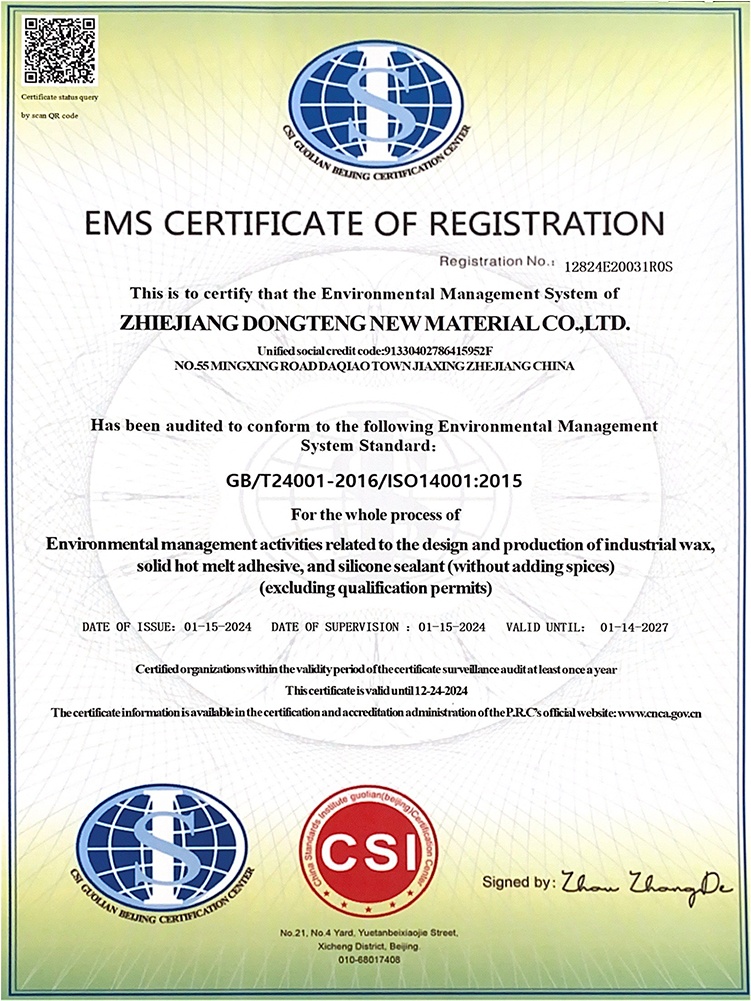浙江東騰新材料有限公司成立于2006年,專注于特種蠟及膠粘劑的專業(yè)制造,經(jīng)過歷年的行業(yè)發(fā)展,產(chǎn)品的精耕細(xì)作,公司現(xiàn)已發(fā)展成為集研發(fā)、生產(chǎn)、銷售綜合一體化的實力企業(yè)。公司現(xiàn)研發(fā)人員13人。歷年來公司持續(xù)有效的運(yùn)行ISO9001、ISO14001、ISO45001、TS16949等管理體系。先后通過了浙江省科技型中小企業(yè)認(rèn)定、高新技術(shù)企業(yè)認(rèn)定、浙江省專精特新中小企業(yè)認(rèn)定。并曾獲科技創(chuàng)新先進(jìn)企業(yè)、嘉興市研究開發(fā)中心、浙江省守合同重信用企業(yè)等榮譽(yù)稱號。